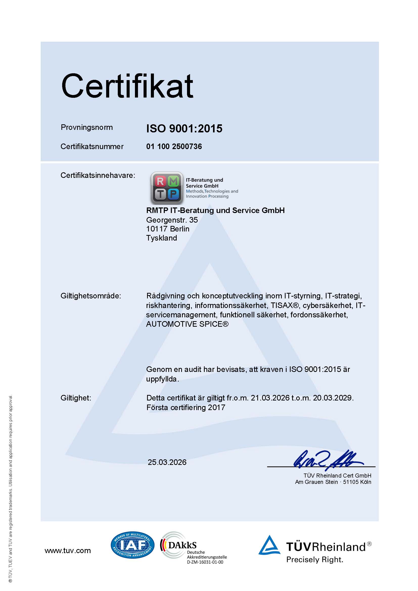 Scope-ID och bedömnings-ID för RMTP IT-Beratung und Service GmbH är S78KTH respektive ATRVFY.